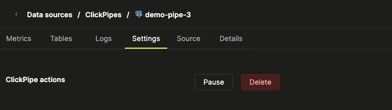 2. Примерно через 5 секунд (а также после обновления страницы) статус ClickPipe должен стать Paused.